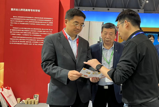 学校高度重视本次博览会的参展和学习交流工作,在党政领导班子的领导下,由党政办公室牵头,精心遴选了近年在校企合作、产教融合、大数据平台等项目参展。在展览现场,重庆市委教育工委书记、市教育委员会主任刘晏兵等领导在我校党委书记刘灿国的陪同下,听取了工作人员的介绍,对学校在智慧幼教建设、应用方面取得的成果给予了肯定。