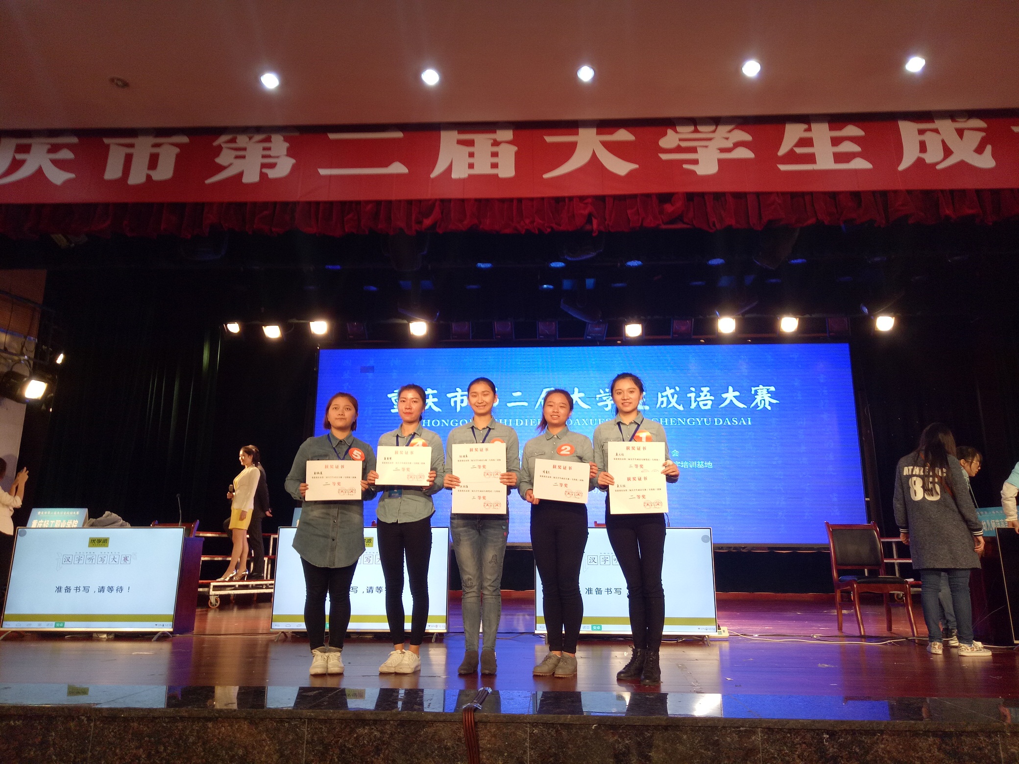 10月29日,重庆市第二届大学生成语大赛在重庆第二师范学院打响。我校派出由语言文学系龚文恬、董雪琴、周桂兰、但羽茜、彭铭星等5名学生组成的代表队参赛,参赛队员沉着应战,发挥出色,并充分发挥团体优势,最终荣获团体二等奖。