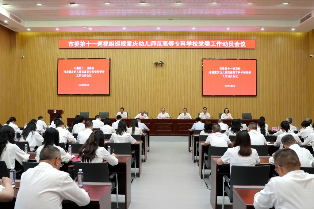 根据市委巡视工作领导小组的部署,2025年9月29日,市委第十一巡视组巡视重庆幼儿师范高等专科学校党委工作动员会召开。会前,市委第十一巡视组组长姚庆江主持召开与重庆幼儿师范高等专科学校党委书记马文华的见面沟通会,传达了市委书记袁家军在书记专题会议和市委常委会会议听取六届市委第六轮巡视情况汇报时的讲话精神。动员会上,姚庆江就即将开展的巡视工作作讲话,通报了巡视任务,并就配合做好巡视工作提出要求;重庆幼儿师范高等专科学校党委书记马文华主持会议并作表态发言。