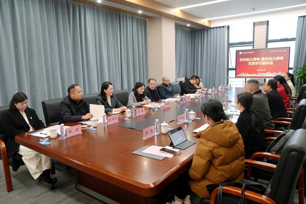 12月19日,钦州幼儿师范高等专科学校党委副书记、校长陈鹏,党委委员、副校长颜循泽等一行到我校交流学习,座谈会在学校图书馆722会议室举行。学校党委书记马文华,党委副书记、校长冉隆锋出席。座谈会由党委委员、副校长李学容主持。