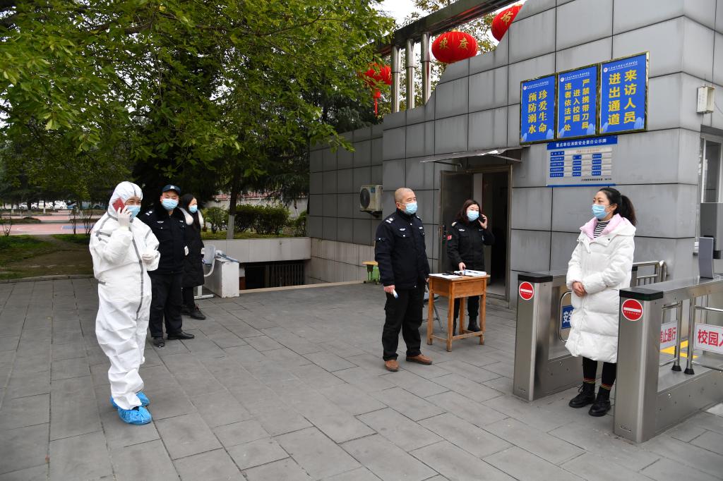 在当天演练过程中,校防控办首先对各二级院系和有关部门负责人进行了应急处置知识培训,参训人员学习了市、区教委关于做好春季开学疫情防控工作要求和学校疫情处置工作方案,了解掌握了学生报到、食堂就餐、学生宿舍、教室行课、大规模核酸检测等不同场景发生疫情应急处置流程和基本要领。随后,在天城卫生院指导下,学校相关部门和人员在校门口实地组织开展了师生报到应急处置演练,切实提高了应急处置工作能力。