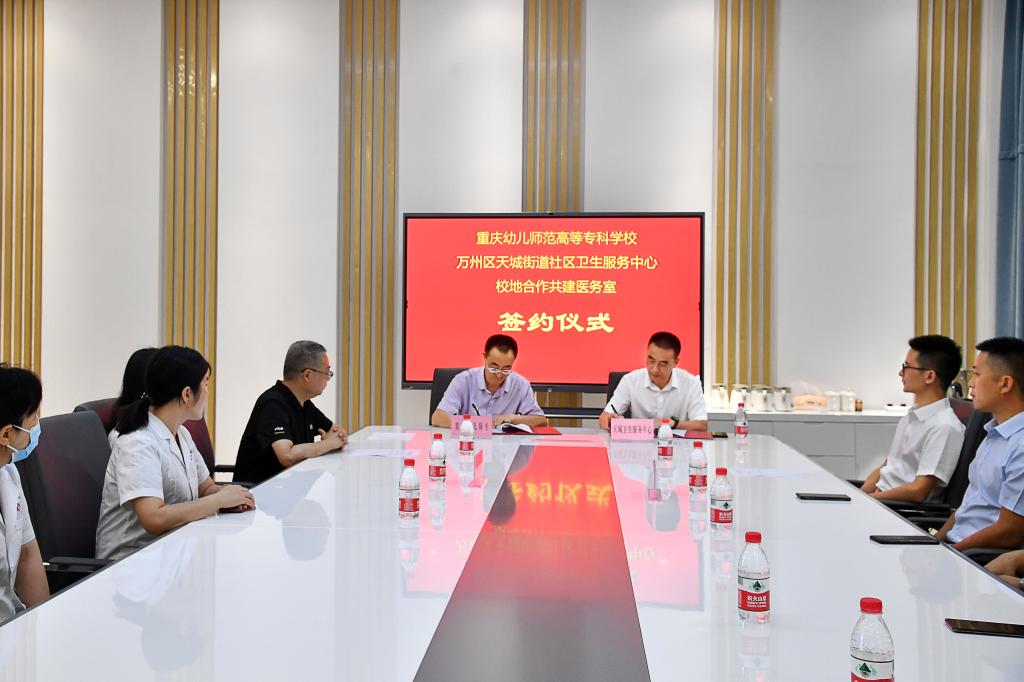 6月28日,我校副校长熊毅与万州区天城街道社区卫生服务中心院长何平分别代表双方正式签署《校地共建校医务室服务协议》,标志着我校医疗卫生和疫情防控工作迈上一个新台阶。
