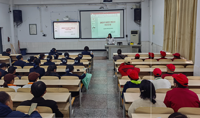 为切实做好环境卫生整治和病媒生物防治工作,保障学校师生卫生安全,近日基建后勤处开展了病媒生物防治工作专题培训,由医务室杨娟医生负责,并邀请学校合作的重庆元江有害生物防治公司防治专员给大家进行讲解。参加培训人员有物业公司全体员工、学校食品安全相关工作人员。