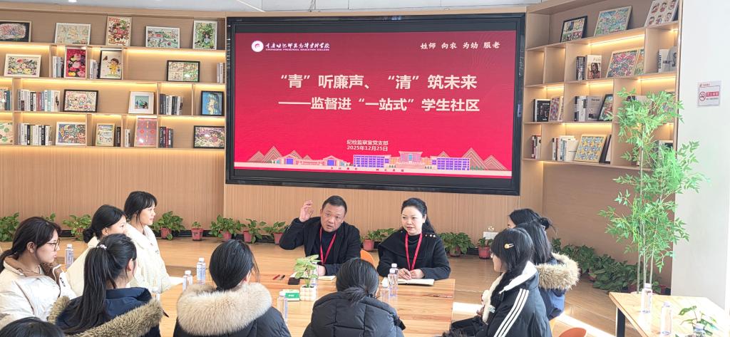 近日,学校纪委书记以普通党员身份参与纪检监察室党支部主题党日,深入“一站式”学生社区,组织开展“‘青’听廉声,‘清’筑未来”主题活动。全体党员与来自智能科技学院、音乐舞蹈学院的30名学生代表进行面对面、心贴心的座谈,在轻松坦诚的氛围中共话廉洁、共谈诉求、共谋发展,现场收集学生学习生活、成长发展等方面的具体诉求和问题反映13项,针对学生权益诉求回应方面还设置了专题线上问卷调研。