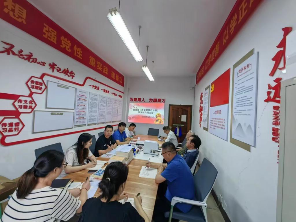 6月29日下午教务处党支部在德馨楼209会议室召开党员大会,支部全体党员参会,会议由支部书记谭伟同志主持。