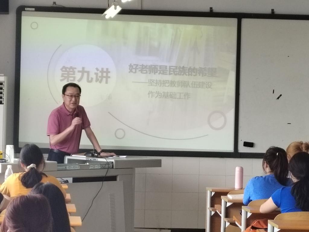 党委书记刘灿国以“全面依法治国”为题,为学生讲清讲透了依法治国在现代化强国建设中的重要地位和基本路径,厘清了青年一代在复兴之路中如何担当履责。党委副书记、校长马文华站在教育强国的高度,为师范专业学生阐释了“好老师是民族的希望 ”,寄语学生们要练好内功,早日成为一名好老师。其他校领导们也选取了不同的主题以世界和国家形势、学校发展等鲜活事例引导青年学子认清形势、砥砺奋斗、勇于担当。