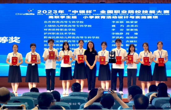 近日,2023年“中银杯”全国职业院校技能大赛“小学教育活动设计与实施”学生组赛项在山东济南职业学院举行,来自全国48所职业院校参加,经过激烈角逐,我校音乐舞蹈学院2021级音乐教育专业王嘉伟、张彬彬同学喜获三等奖的好成绩。