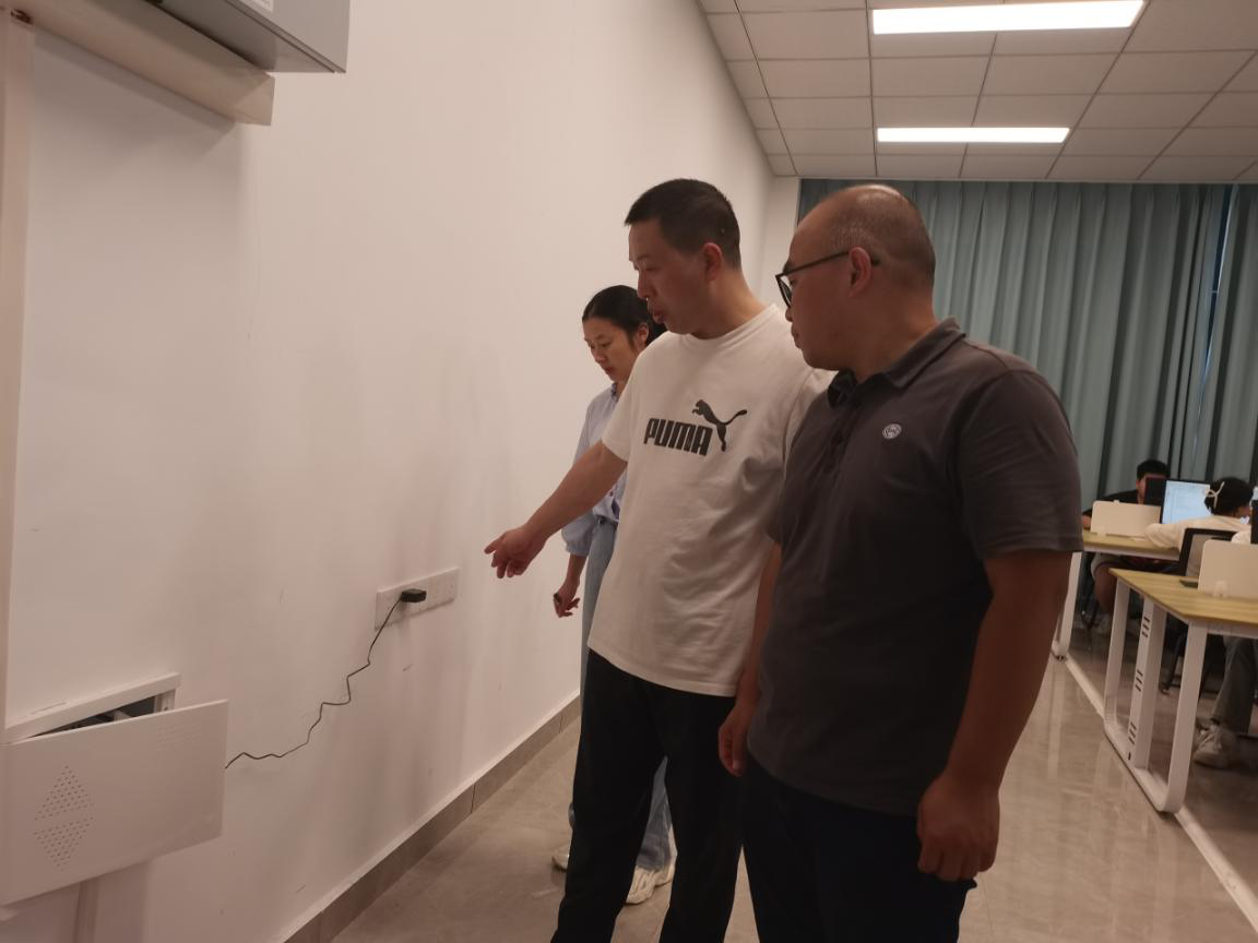 为进一步加强教学场所的安全管理,提高安全防范意识,规范实训室安全管理,消除实训室安全隐患,筑牢校园教学安全防线。我校在6月13-14日开展实训室安全检查工作。此次实训室安全检查工作由教务处谭伟副处长带队,党委保卫部(党委武装部、安全管理处)、基建后勤处、教务处相关人员参与。