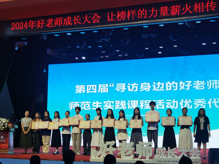 9月20日,2024年好老师成长大会暨第五届“寻找中国好老师”公益行动与“寻访身边的好老师”师范生实践课程活动总结大会在西南大学举行,我校学前教育学院学生李承坷、谭欢、王芳、吴琳、吴琦、吴睿涵、谢雨霏和儿童早期发展学院汤渝娥凭借其深厚的专业素养、敏锐的观察能力、真挚的师生情感以及出色的实践能力,从众多参赛者中脱颖而出,荣获了“优秀师范生”的称号。这一荣誉不仅是对学生们个人努力的肯定,更是对我校师范教育成果的一次集中展示和高度认可。
