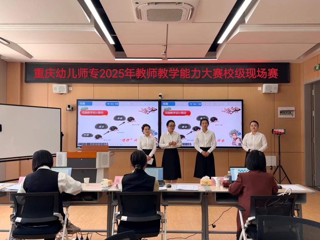 决赛现场,参赛教师通过虚拟仿真系统、AI教学助手等数字化工具,生动呈现“岗课赛证”融通的创新实践。其中,儿童早期发展学院选送课程《婴幼儿回应性照料》的教学团队充分运用信息技术打造沉浸式婴幼儿回应性照料教学场景,音乐舞蹈学院《小学音乐教学活动设计与指导》课程的教学团队利用数字化美育评价系统实现教学行为数据分析,都充分彰显我校教师在智慧化教学改革中的创新活力。三位校外专家从教学设计、教学能力展示、信息技术运用等角度对各参赛团队进行多维评价。
