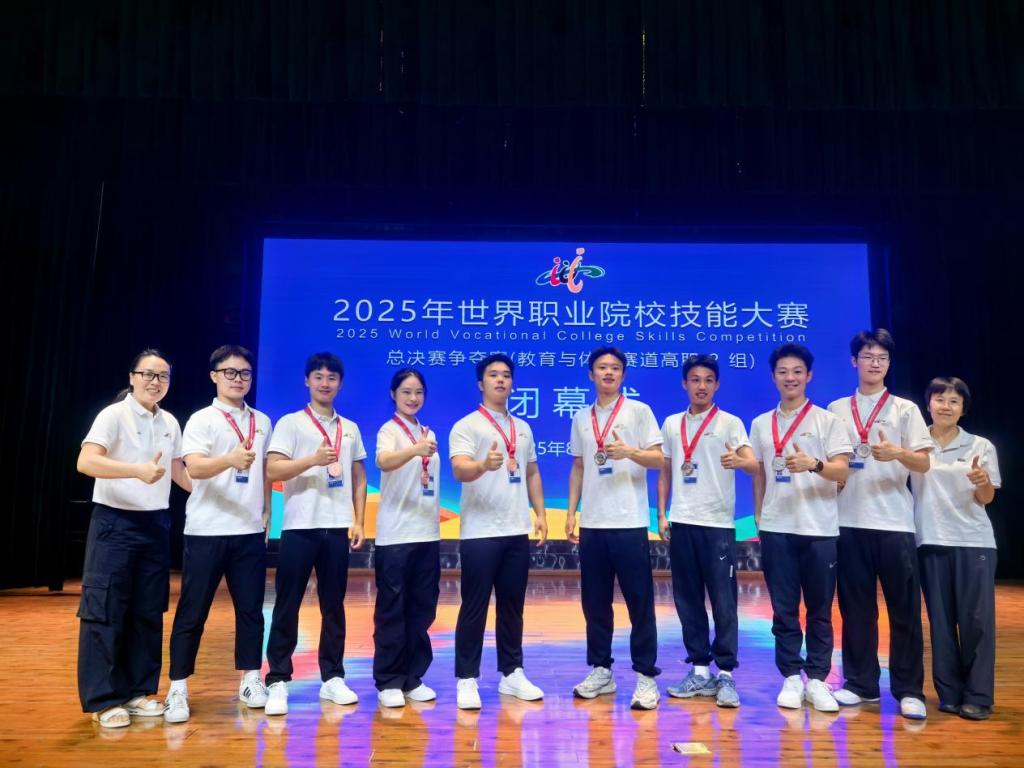 8月28日-30日,2025年世界职业院校技能大赛总决赛争夺赛教育与体育赛道、表演艺术赛道在湖南长沙体育职业学院、湖南民政职业技术学院、黑龙江艺术职业学院完美落幕。由我校体育学院学生陈政阳、彭嘉鑫、李主权、徐晨曦和阳嘉鑫、钱宏健、杨毅、陈诗组建的2支参赛队,音乐舞蹈学院学生周子涵、钟成超、陈严、李卓勋和卢煜辉、李卓芯、贺苇茜、刘德君组建的2支参赛队,4支队伍在争夺赛中脱颖而出,斩获2个银奖2个铜奖。