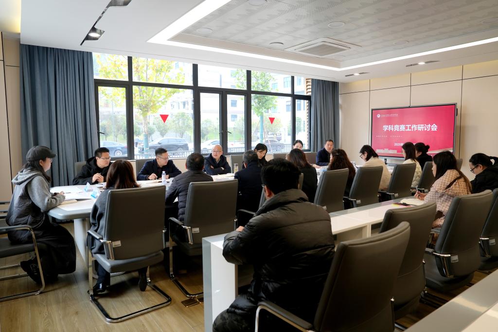教务处对学校学科竞赛工作开展作统筹部署,各学院负责人汇报近年来取得的竞赛成果与下一阶段备赛进展,同时也提出备赛过程中学生参与积极性不高、教师指导能力待提升等问题。