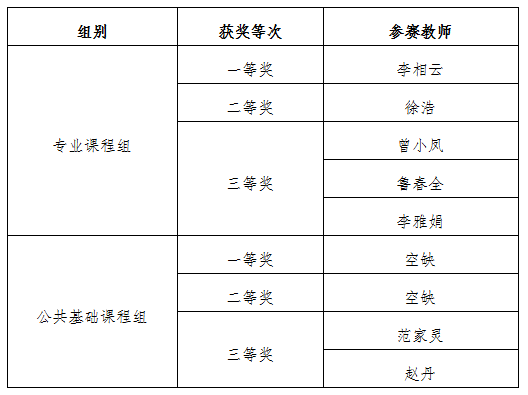 考务工作教学研究/Teaching research 当前位置: 首页 >> 教学研究 >> 正文 重庆幼儿师范高等专科学校关于学前教育专业“研课标·说课标”校级决赛比赛得分及获奖情况的公示 更新时间:2021-06-22 15:53:51 信息来源:教务处 浏览人数: 各院系: 根据《重庆幼儿师范高等专科学校关于开展学前教育专业“研课标、说课标”决赛的通知》要求,我校组织开 展了学前教育专业“研课标、说课标”校级决赛。经组织专家现场评审,各参赛选手最终得分情况如下: 根据选手整体得分情况,现评出一等奖1名,二等奖1名,三等奖5名。获奖情况公示如下: 公示时间为:2021年6月22日至2021年6月24日。 如对公示结果有异议,请在公示期内与教务处教学研究科李雪玲老师联系。 教务处 2022年6月22日 上一篇:重庆幼儿师范高等专科学校关于2021年“超星杯”教师教学能力比赛获奖情况的公示 下一篇:我校开展教师教学能力比赛专题培训