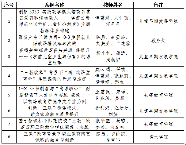 考务工作教学研究/Teaching research 当前位置: 首页 >> 教学研究 >> 正文 我校在“三教”改革典型案例和优秀案例评选活动中斩获佳绩 更新时间:2023-03-31 09:44:23 信息来源: 浏览人数: 近日,重庆市教育评估研究会公布了“三教”改革典型案例和优秀案例认证名单。我校教师在此次评选活动中斩获佳绩,共有8篇案例被认定为优秀案例。 下一步我校将继续深入推进“三教”改革,推广优秀经验,奋力办好新时代职业教育,争取形成一批可复制、可推广的典型经验。 市级优秀案例名单 上一篇:我校2项成果获2022年职业教育国家级教学成果二等奖 下一篇:我校成功召开课程思政专题讲座
