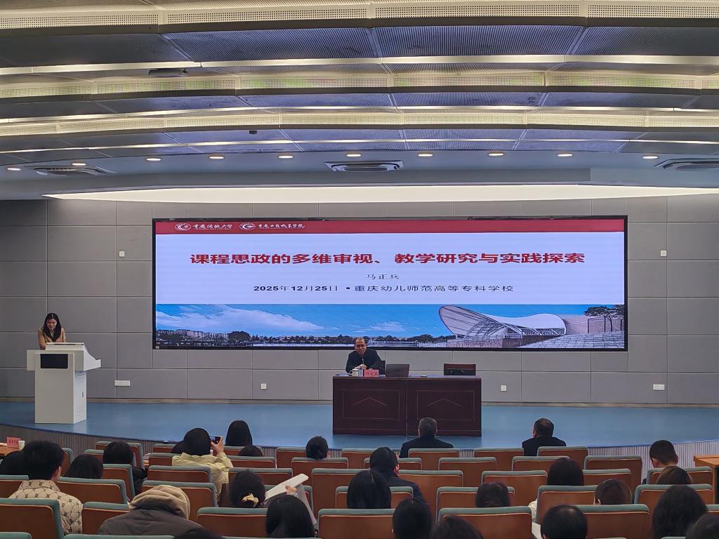 为强化教师思想政治引领,推进课程思政高质量建设,提升教师课程思政育人能力,12月25日下午,学校在仁爱楼2201学术报告厅成功举办课程思政专题讲座。本次讲座特邀重庆开放大学马正兵教授作专题报告,副校长李学容主持讲座。各学院院长、副院长、专业负责人、教研室主任、课程负责人及教师代表参加了学习。