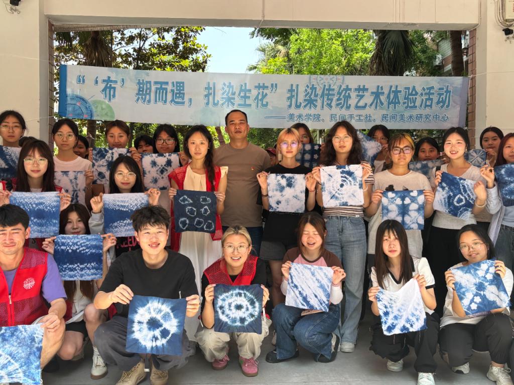 5月13日中午,美术学院联合民间美术研究中心于红柚润德“一站式”学生社区成功举办了一场别开生面的“‘布’期而遇 扎染生花”扎染传统艺术体验活动。此次活动旨在让同学们近距离感受中国传统手艺的独特魅力,推动民间艺术的传承与发展。