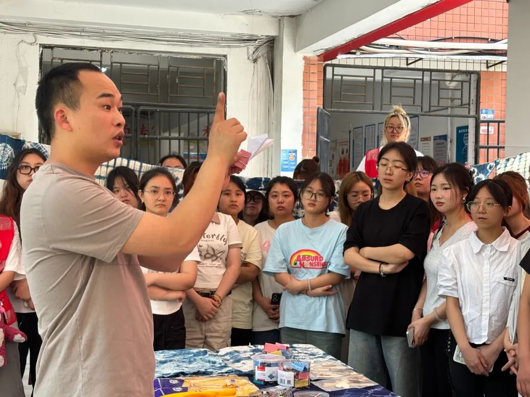 活动伊始,学院中共党员、教师代表李冰老师亲临指导,为同学们深入解读扎染艺术的历史渊源、工艺技巧和艺术特点。扎染,作为汉族民间传统而独特的染色工艺,其古称扎缬、绞缬、夹缬和染缬,不仅晕色丰富、变化自然,更以其无穷趣味,吸引了众多师生的目光。一种靛色晕染千年,扎染艺术传承至今,已成为世界工艺瑰宝之一。