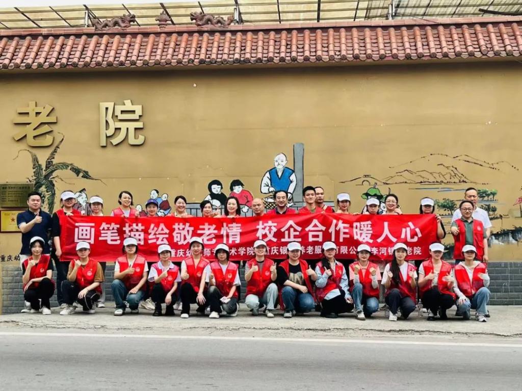 5月18日,美术学院师生走进万州区李河镇敬老院开展“画笔描绘敬老情 校企合作暖人心”职教产教融合系列活动。学院党员、干部、美育研究中心、民间艺术工作室和入党积极分子等师生代表30余人参加活动。