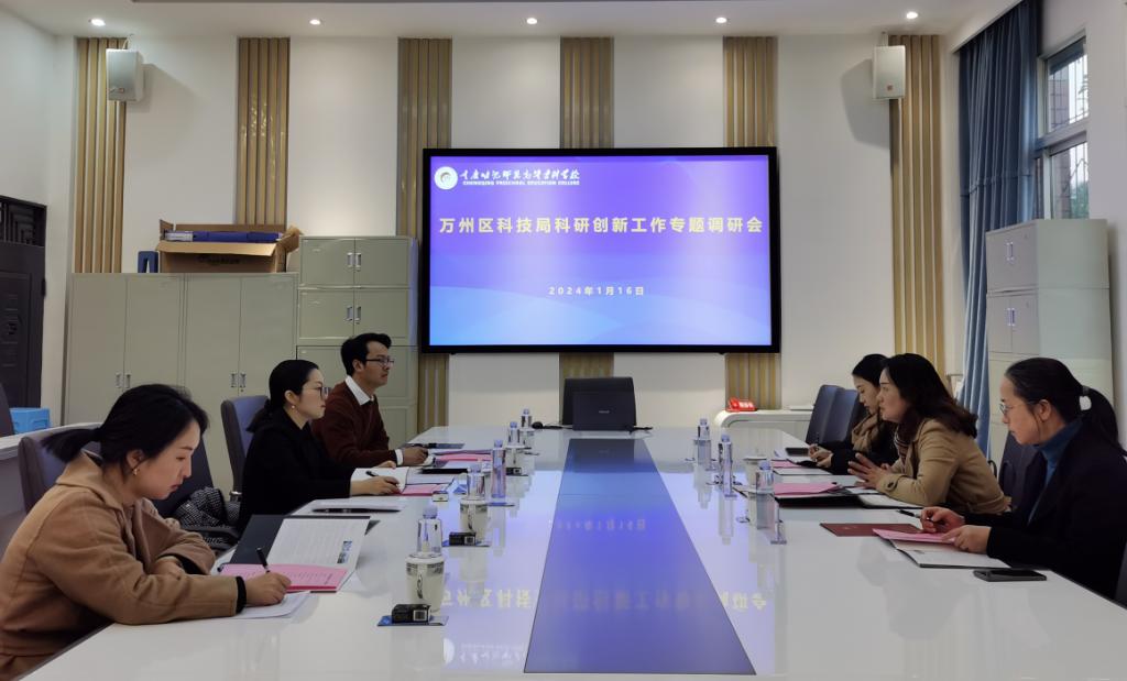 1月16日,万州区科技局党组成员、副局长谭韵、重庆三峡学院教授朱蒋华、区科技局平台科副科长周靖莅临我校开展科研创新工作专题调研。党委委员、副校长肖幸及科研处相关人员参加了本次专题调研会。