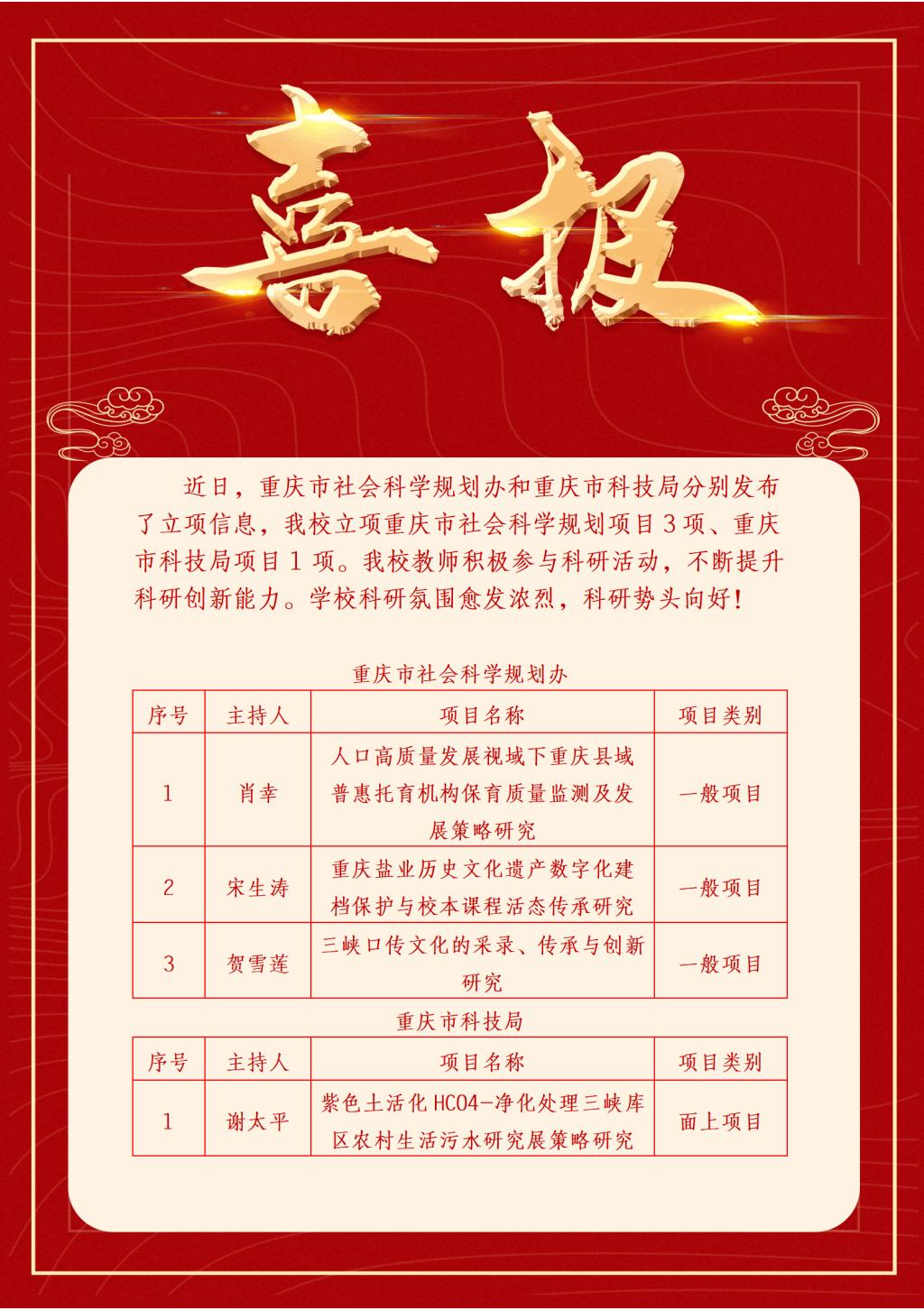 喜报:我校获批重庆市社会科学规划项目3项和重庆市科技局项目1项