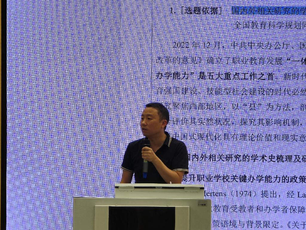 会议伊始,田兴江向大家介绍了林克松教授,并对他的到来表示热烈的欢迎。林克松教授是西南大学博士、华东师范大学博士后、西南大学教授、博士生导师,担任重庆市重点人文社科基地西南大学教育发展研究院副院长、西南大学教育学一流学科建设发展中心常务副主任等职务,主要从事职业教育理论、职业教育课程教学论研究。