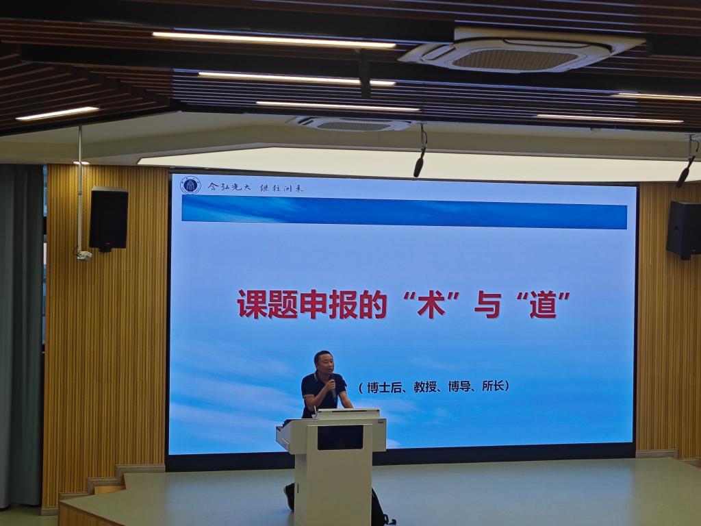 9月13日下午,西南大学林克松教授的国家级科研项目培育指导讲座在我校小湾校区2号楼2301开讲,主题是“课题申报的‘术’与‘道’”,学前教育学院田兴江院长担任会议主持人,我校博士工作站主持人及全体成员和无课教师参与本次讲座。