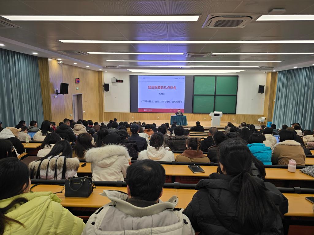 2025年1月2日下午,华中农业大学经济管理学博士,长江师范学院谭明交教授应邀到校开展题为“建言资政的几点体会”的资政报告撰写指导,学校无课教师参加,科研处(学科建设办公室)负责人主持本次活动。