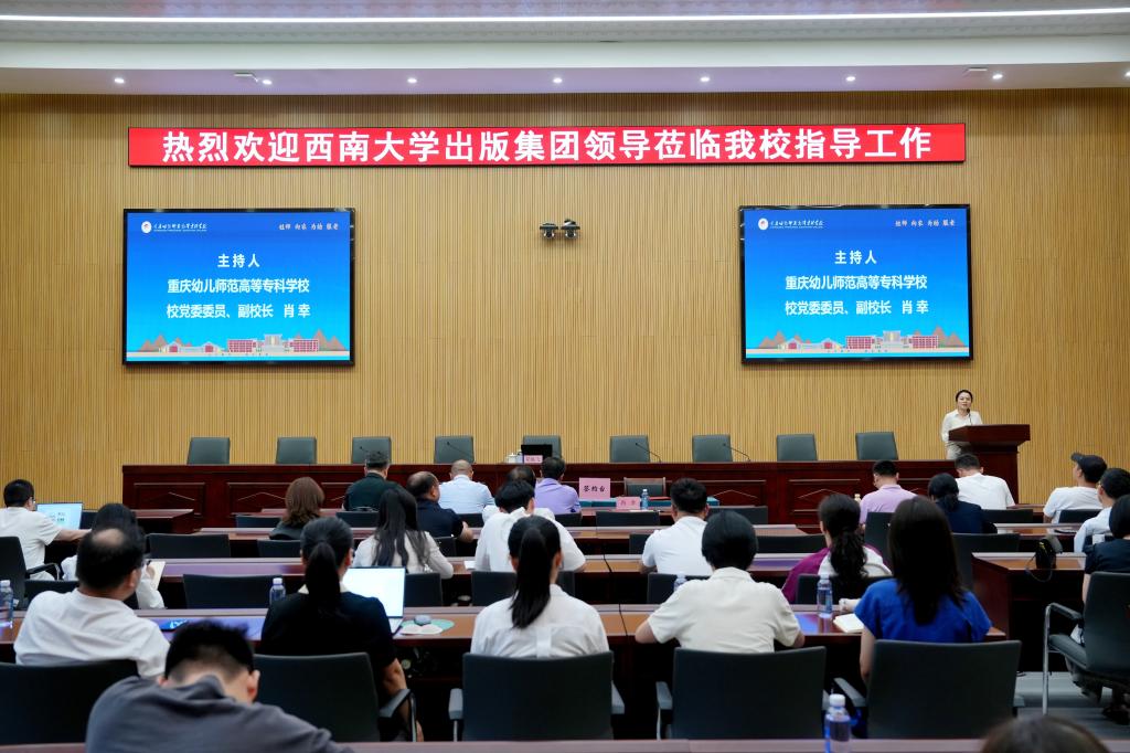 2025年5月29日下午,重庆幼儿师范高等专科学校与西南大学出版集团战略合作签约仪式在小湾校区举行。校党委副书记、校长冉隆锋,西南大学出版集团党委书记、董事长张发钧出席签约仪式,党委委员、副校长肖幸主持会议,全校专业技术人员共同见证。