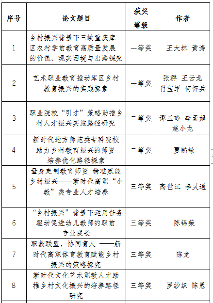 “职业教育赋能乡村振兴创新教育”征文获奖名单