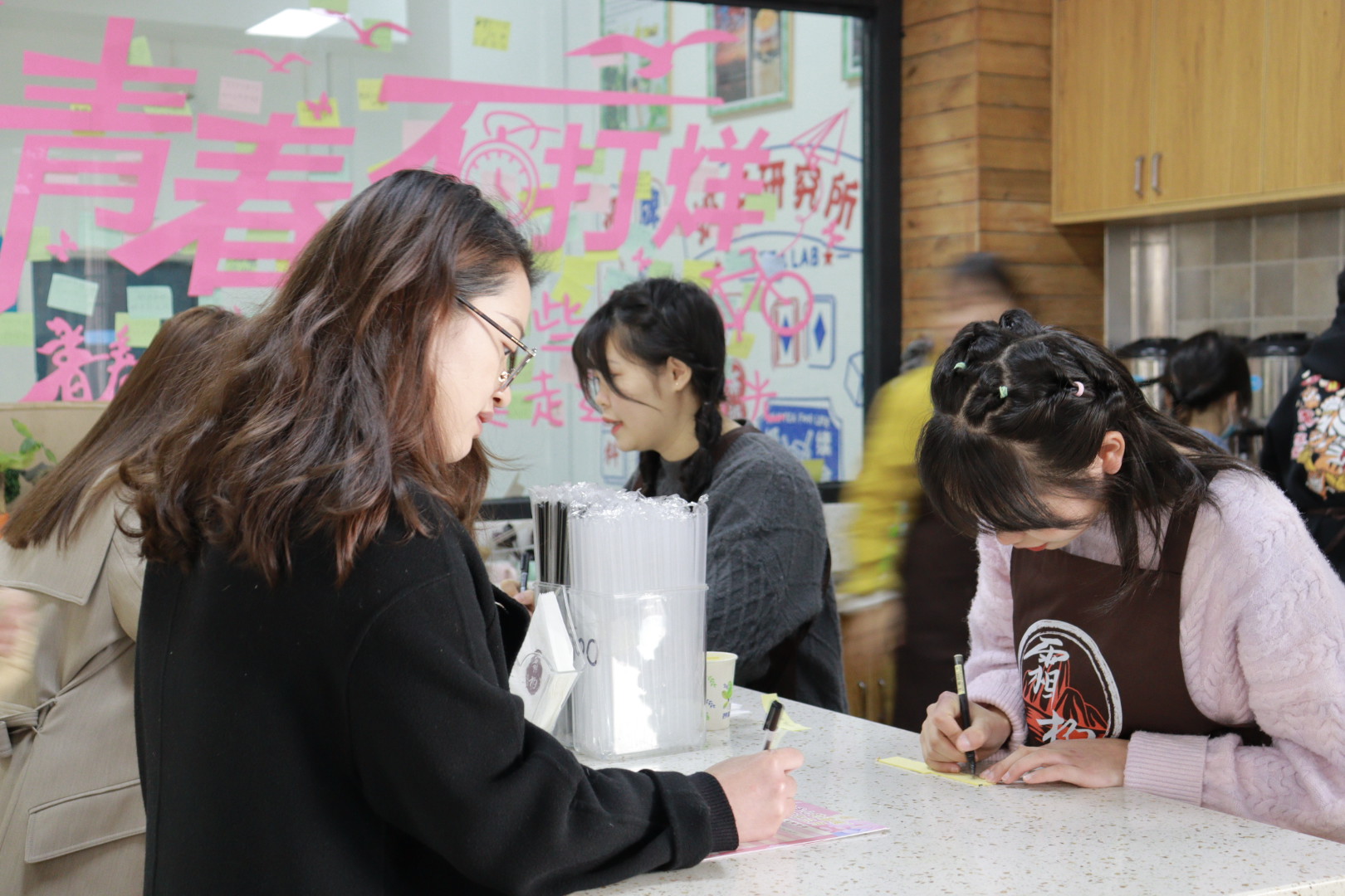 本次活动由2020级尚新咖、梧桐咖、数媒学生团队协同组织开展,内容包括“把名字留在三月”签名活动,“三月春风送祝福”卡片抽签活动和“奶茶暖手暖心”礼品敬赠。