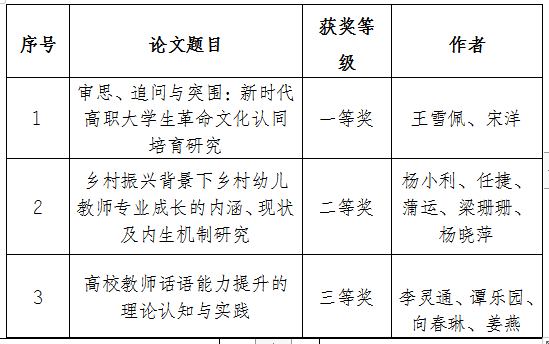 近日,重庆市高等教育学会公布了2022年学术年会论文征集评选的获奖结果。我校共有3篇论文获得奖励,其中一等奖1篇,二等奖1篇,三等奖1篇。