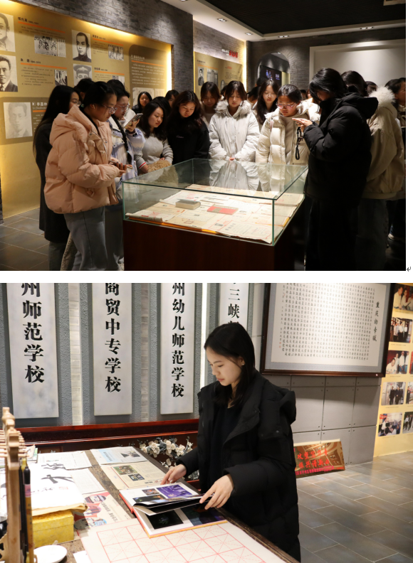 校史展览馆作为学校红色文化育人的核心载体,以“传承红色文化,培育幼教英才”为主题,通过七大篇章系统展现了学校百年师范教育历程与下川东革命斗争史。馆内陈列的文字、图片与实物,生动再现了萧楚女、恽代英、朱德等革命先辈在此工作斗争的峥嵘岁月,以及学校作为“下川东革命摇篮”的辉煌历史。学员们在讲解员的引导下,深入了解了学校在民族救亡、教育图存、育人化德等阶段的奋斗足迹,深刻感受到幼专人始终与民族共命运、同时代齐奋进的精神内核。