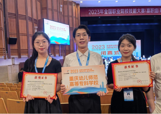 近日,2023全国职业院校技能大赛(高职组)声乐、器乐表演赛项在杭州浙江艺术职业学院举行,来自全国53所职业院校参加,经过激烈角逐,我院音乐教育专业刘涛、唐嵘嵘、谭雁月三位同学喜获二等奖的好成绩。