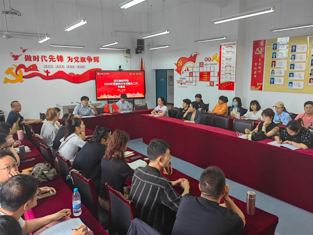 为深入贯彻教育部关于师德师风建设的相关要求,进一步提升音乐舞蹈学院教师队伍的师德修养,确保教育教学质量,学院于2024年5月9日在学院党员活动室召开了师德师风专项整治工作专题会。学院全体教职工参加会,会议由学院党支部副书记赵洪斌主持。