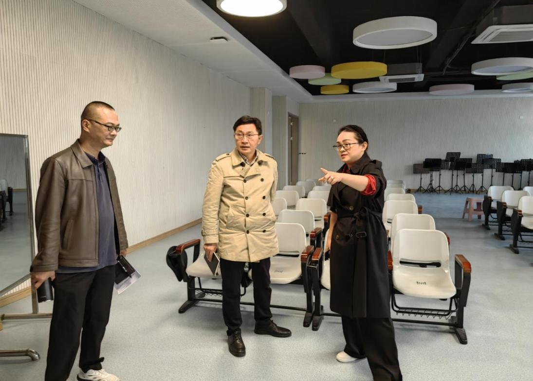 勇刚副书记首先对音乐舞蹈学院的教学设施和实训场所,包括音乐教室、舞蹈房、小琴房、办公用房等硬件设施进行了全面了解。