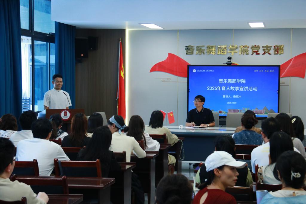 为全面贯彻“立德树人”根本任务,进一步加强师德师风建设,分享与推广一线育人经验,2025年10月9日,音乐舞蹈学院在党员活动室举办了育人故事宣讲活动。活动由学院赵洪斌同志主持,全体教职工共同参与聆听。
