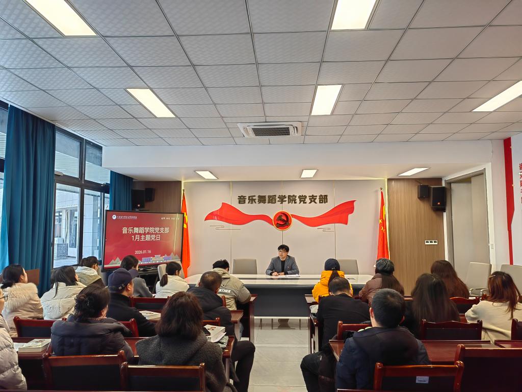 为持续巩固拓展党员教育成果,进一步增强基层党组织的政治功能和组织功能,2026年1月16日,音乐舞蹈学院党支部在学院党员活动室组织开展了以“守正创新担使命 奋楫笃行开新局”为主题的一月份党日活动。活动由党支部书记赵洪斌主持,全体党员参加。