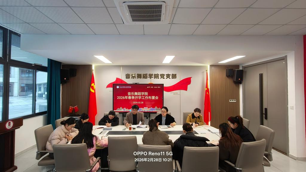 2月28日,音乐舞蹈学院在党员活动室召开2026年春季开学工作布置会,全体行政人员参会,旨在统一思想、明确任务,为新学期工作谋篇布局。