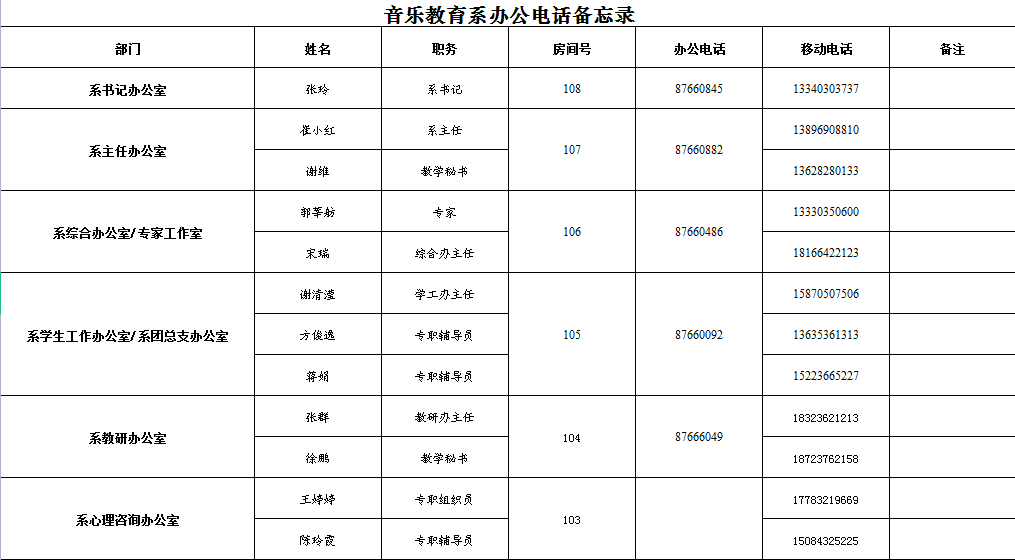 音乐教育系行政办公电话备忘录