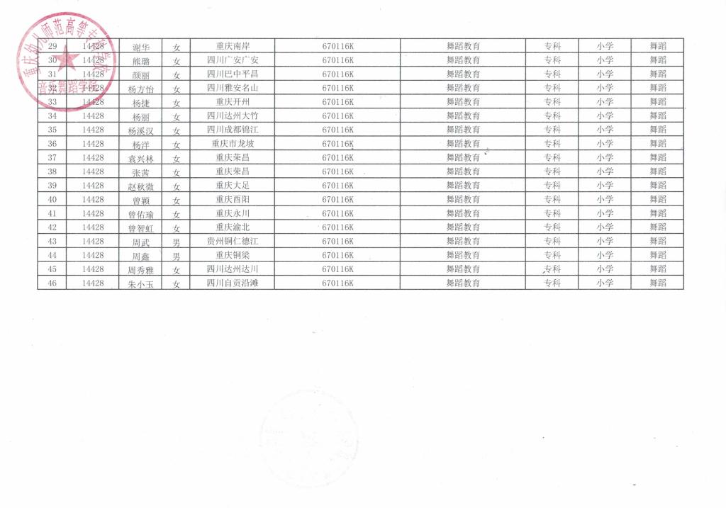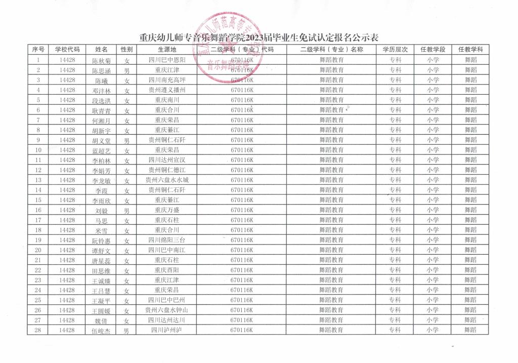 2023届毕业生免试认定报名公示表