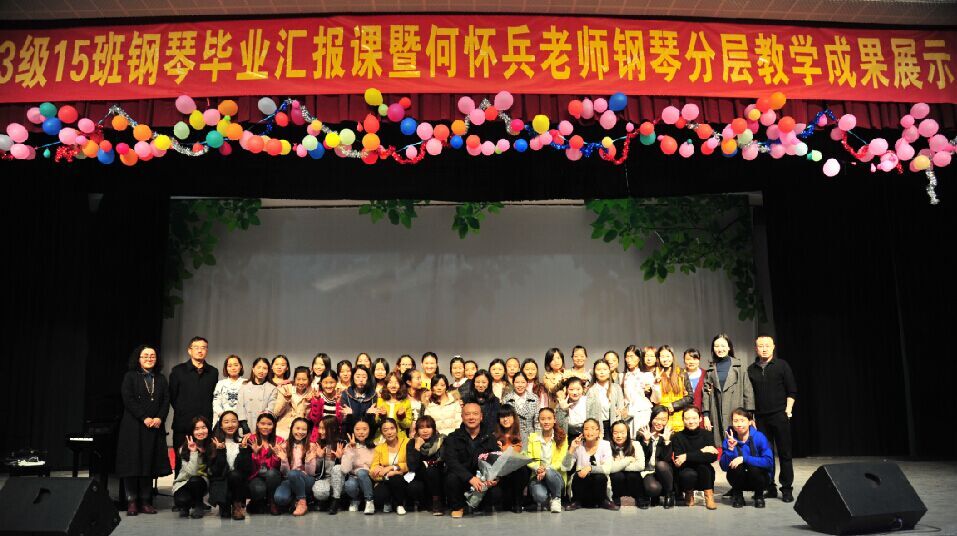 为促进我校学前教育专业钢琴教学水平的发展。音乐教育系何怀兵老师于2015年11月23日下午3点30,在我校大礼堂开展了一场名为“何怀兵老师钢琴分层教学成果展示”的活动。