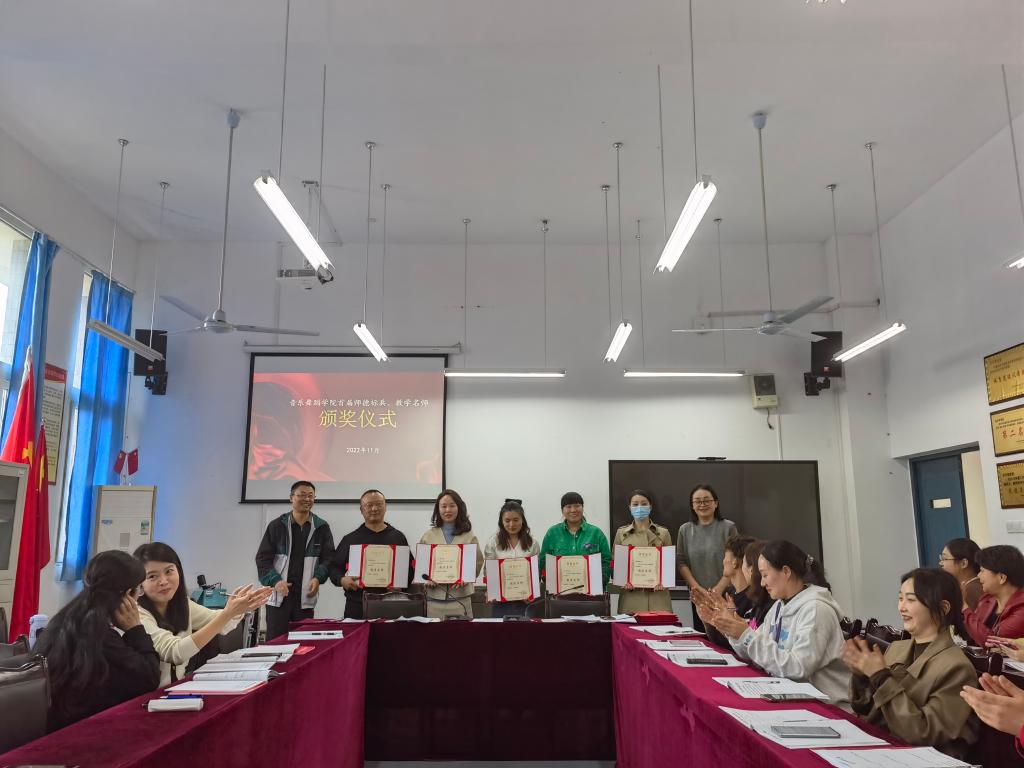 通过前期系列工作,收到各教研室、行政组(由从事党务、行政工作且未划到我院教研室的工作人员组成)推荐“师德标兵”6名“教学名师9名”,经评审委员会严格认真的无记名投票评选,最终产生“师德标兵”6人分别是:王婷婷、徐鹏、张艳、李小青、杨绍冲、谭渊;“教学名师”5人杨倩、何怀兵、吴隽、娄俊俏、李雪。