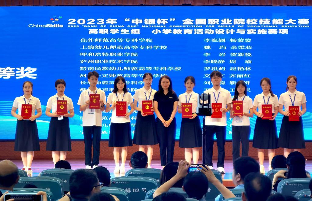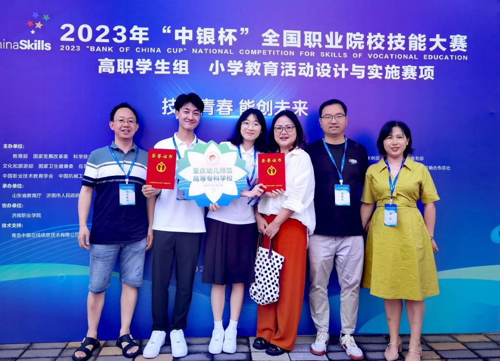 近日,2023年“中银杯”全国职业院校技能大赛“小学教育活动设计与实施”学生组赛项在山东济南职业学院举行,来自全国48所职业院校参加,经过激烈角逐,我院2021级音乐教育专业王嘉伟、张彬彬同学喜获三等奖的好成绩。