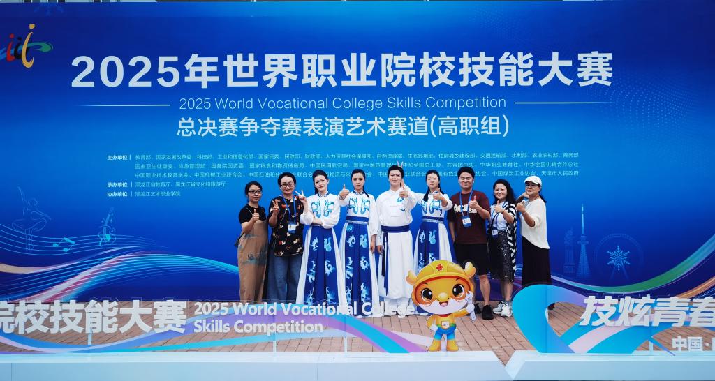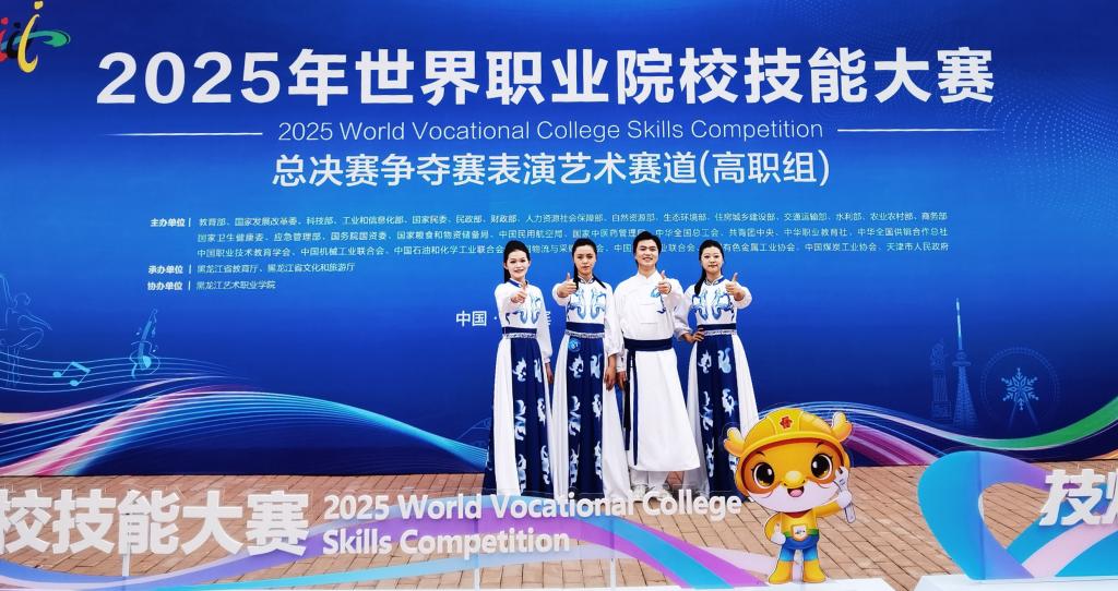 8月28-29日,2025年世界职业院校技能大赛总决赛争夺赛表演艺术赛道高职组在黑龙江艺术职业学院圆满落幕。我院卢煜辉、贺苇茜、李卓芯、刘德君四位学生组队参赛荣获铜奖。