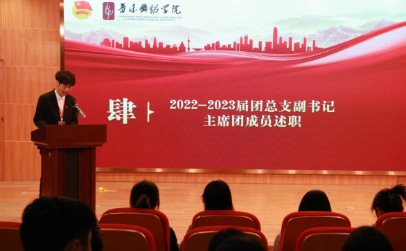 接着是2022-2023届团总支副书记谭敬娴、主席团成员刘涛述职,分享了工作经验,讲述了责任担当,阐明了工作重难点。