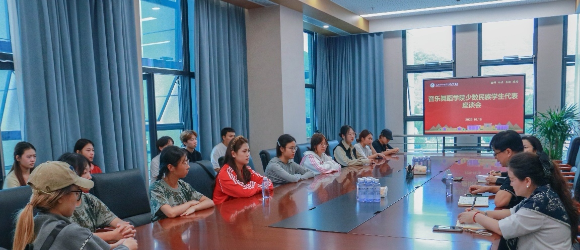 本次座谈的学生代表民族构成多元,涵盖了藏族、回族、彝族、土家族、布衣族、苗族、侗族、仡佬族、满族等九个民族,专业方向分布于音乐教育、歌舞表演、舞蹈教育、艺术教育等领域,充分展现了我校民族团结、文化交融的生动图景。
