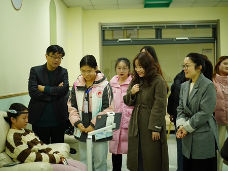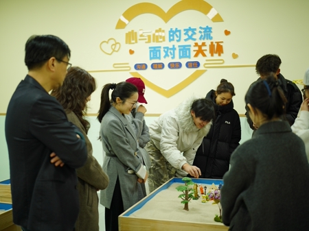 活动伊始,肖幸带领师生共同参观了学校心理健康中心,实地走访音乐心理放松室、VR心理训练室、认知行为训练室等多个功能区域,深入了解心理健康服务的设施配置与运行机制。她强调,这些专业的心理支持资源,就是要扎根于同学们的生活圈,成为大家“想得起、用得上、信得过”的贴心伙伴,让关怀无处不在。