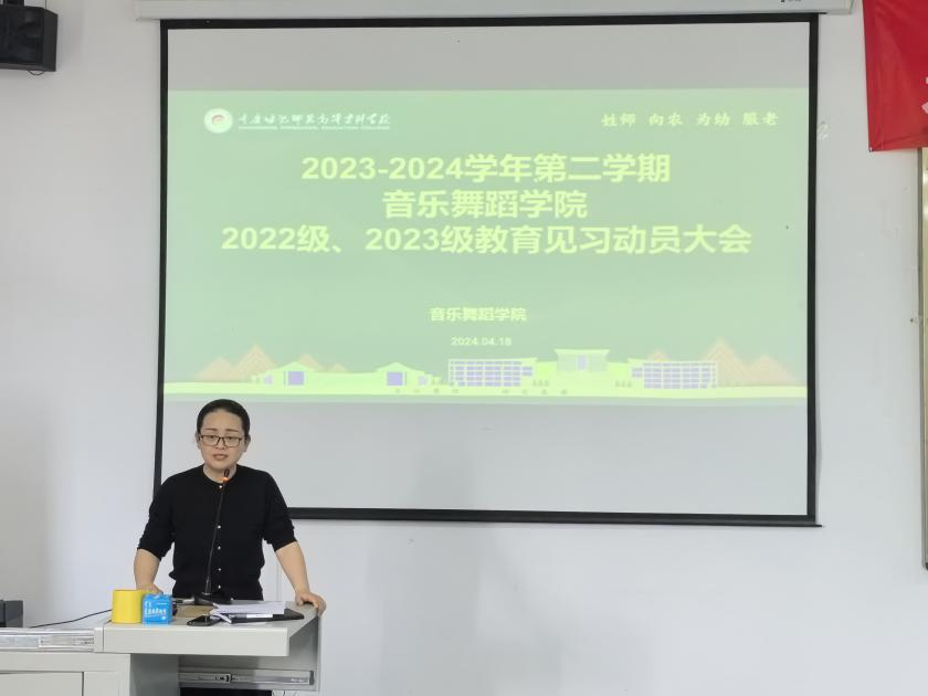 4月18日,学院召开了实习动员大会,对全体实习学生和指导老师进行了实习培训。在大会上,教研办负责人蒋娟对见习指导教师、见习学生进行了具体见习内容的培训,确保学生在见习期间能够更好地适应教学环境,提高教学实践能力。学院院长崔小红强调了教育见习对师范生成长的重要性以及实习过程中的安全注意事项。