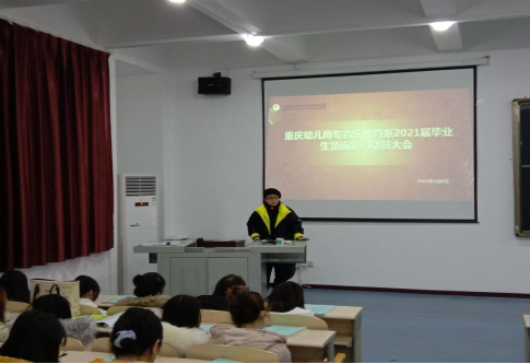 2021年1月4日重庆幼儿师专音乐教育系2021届毕业生顶岗实习动员大会在仁爱楼学术报告厅3召开。音乐教育系党政主要负责人、指导教师、辅导员及2021届毕业生参会。