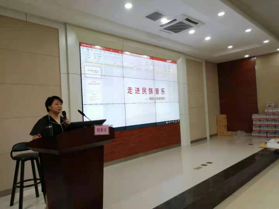 培训中,何老师从爱国歌曲的选择、欣赏、音乐创作表现手法等方面进行了深入分析,通过身边最熟悉的爱过歌曲《没有共产党就没有新中国》、《唱支山歌给党听》由浅入深到《黄河大合唱》等经典歌曲的鉴赏分析,具有专业功底的演唱、吟诵和评议、以及老师们的互动,使全体培训教师感受到中华民族的灿烂文化以及作品的英雄气概。同时,何老师深厚的专业教学基本功、专业的音乐指导能力和精彩的歌曲演唱技巧让所有参训教师享受了一场专业的视听大餐,受到了主办方的高度好评!